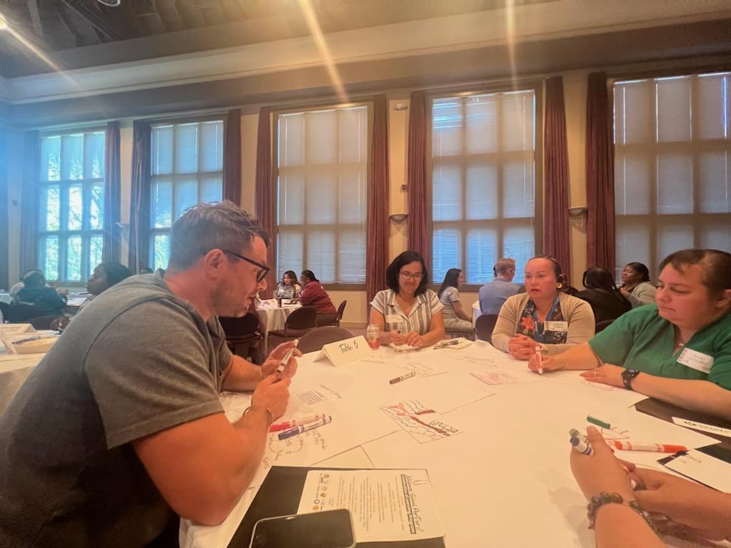 The name World Café reflects a casual, collaborative spirit, where small groups explore topics from different perspectives. To ensure diverse viewpoints were represented, FIA’s Director of Partnerships and Organizing, Tania Gutiérrez, structured each table with a mix of principals, teachers, parent coordinators, district leaders, funders, and parents.