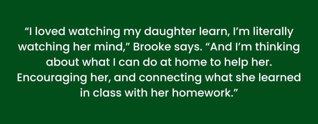 Through observing Kinder instruction at Hoover, parent Brook identified ways she can better teach her daughter at home.