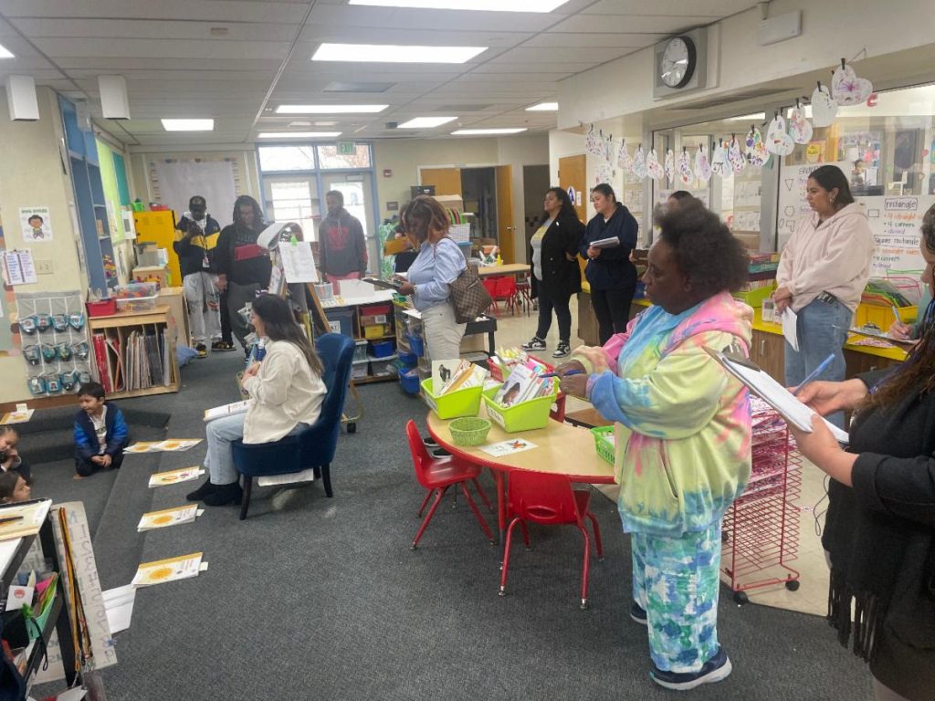 The fifth session is called an “Accountability Walk.” The family leaders are here to visit classrooms and observe literacy instruction.