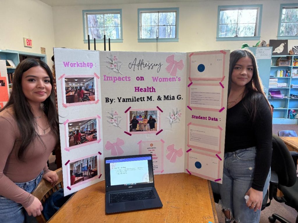 Seniors Mia and Yamilett partnered with Planned Parenthood to create a multimedia workshop on reproductive health and abortion access, aiming to educate peers and combat stigma.