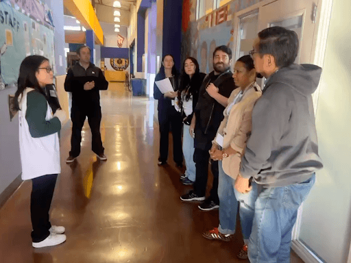 Lucinda, senior at Aspire Lionel Wilson leads tour guests on a tour.