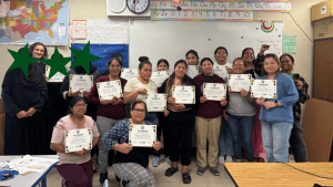 The parents – mostly Arabic and Spanish native speakers – were finishing up the last Lit for Literacy session of their Spring cohort.