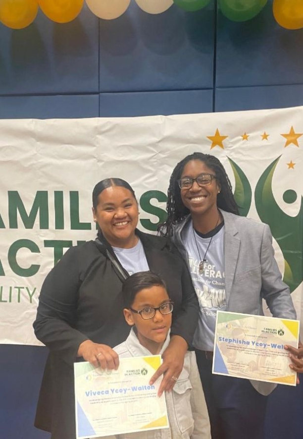 Viveca and her wife, Stephisha Ycoy-Walton, recently completed a Family Literacy Institute hosted by FIA and Education for Change Public Schools (EFC). Over four weeks, families built knowledge around EFC’s science-based approach to reading for students, as well as reading standards and achievement milestones, while also learning strategies families can use at home to get their child on grade level.