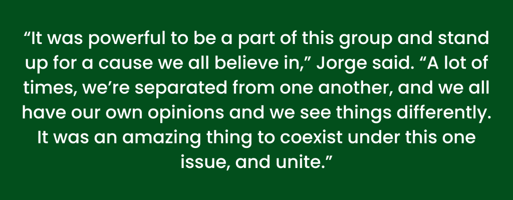 Jorge also said he was proud and inspired to join in the march with other student and parent leaders. He felt like he was part of a united movement and was feeling inspired to make a real, lasting change for the better for Oakland public schools.
