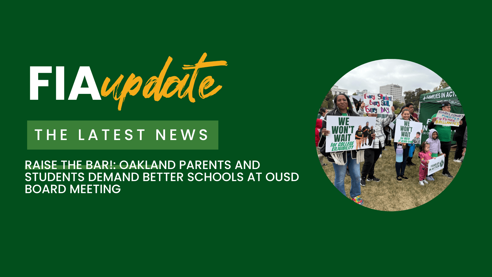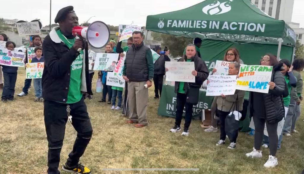 That’s why Sarai joined over 100 other FIA family and student leaders on a march to the OUSD Board of Education meeting to share their truths with the school board. The family and student leaders, supported by FIA organizers, first held a press conference at Lake Merritt before coming together to march together to the school board meeting, chanting “Raise the Bar!”