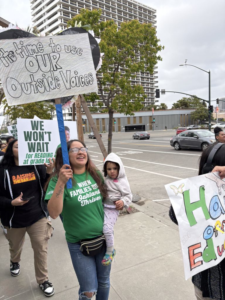 Watch as Oakland Parents and Students (Like Sarai pictured in the middle) demand for better schools as we marched from Lake Merritt to the OUSD board meeting on April 23, 2025.