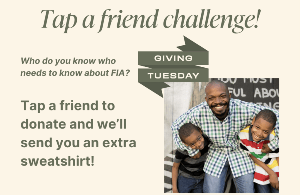 Now, you can Sport Your Support for Educational Justice with a limited-edition FIA sweatshirt by reaching the $1,000 giving level. Let us know your size when you donate!